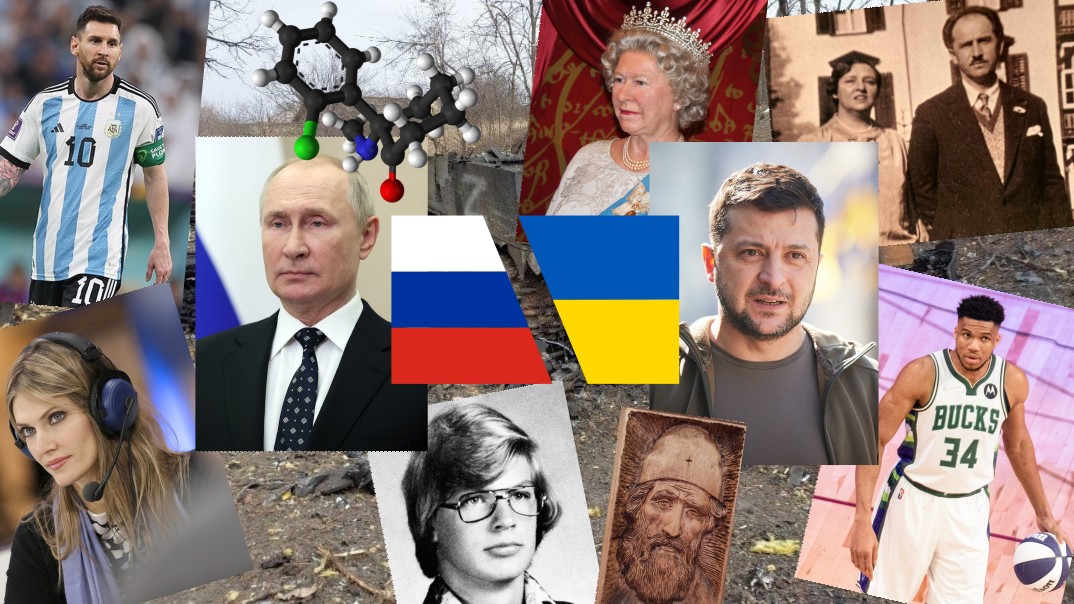 Φωτογραφίες σχετικές με τα πρώτα λήμματα. Εικονίζονται Πούτιν και Ζελένσκι, Ελισάβετ Β΄, Λιονέλ Μέσι, Εύα Καϊλή, Αντετοκούνμπου, Παπανδρέου και Κυβέλη, Άγιος Παΐσιος