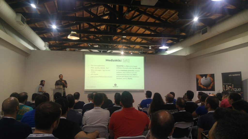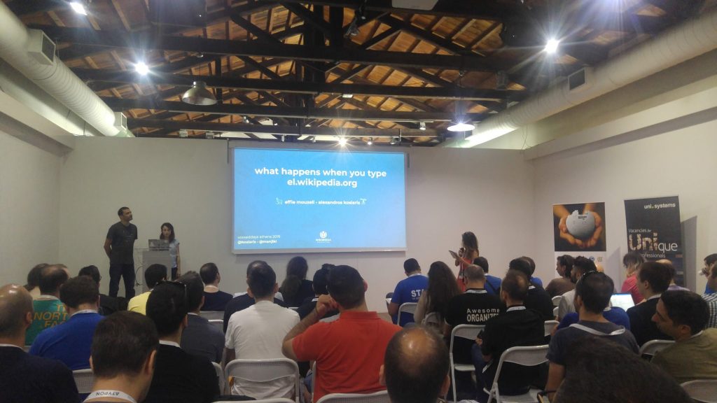 Το Wikimedia Community User Group Greece, ως επίσημος υποστηρικτής του event, ήταν εκεί όπως πάντα με την παρουσία ενός εκπροσώπου προγραμματιστή καθώς και τη νικήτρια του διαγωνισμού λημματογράφησης για την τεχνολογία (και του Wiki Loves EU!). H wikipedia όμως είχε και την δική της παρουσίαση όπου η Έφη Μουζέλη και ο Αλέξανδρος Κοσιάρης μίλησαν για το καλοστημένο δίκτυο σερβερ και υπηρεσιών της wikipedia καθώς και εξήγησαν με απλά λόγια τι γίνεται όταν ένας χρήστης πατάει el.wikipedia.org στον υπολογιστή του.