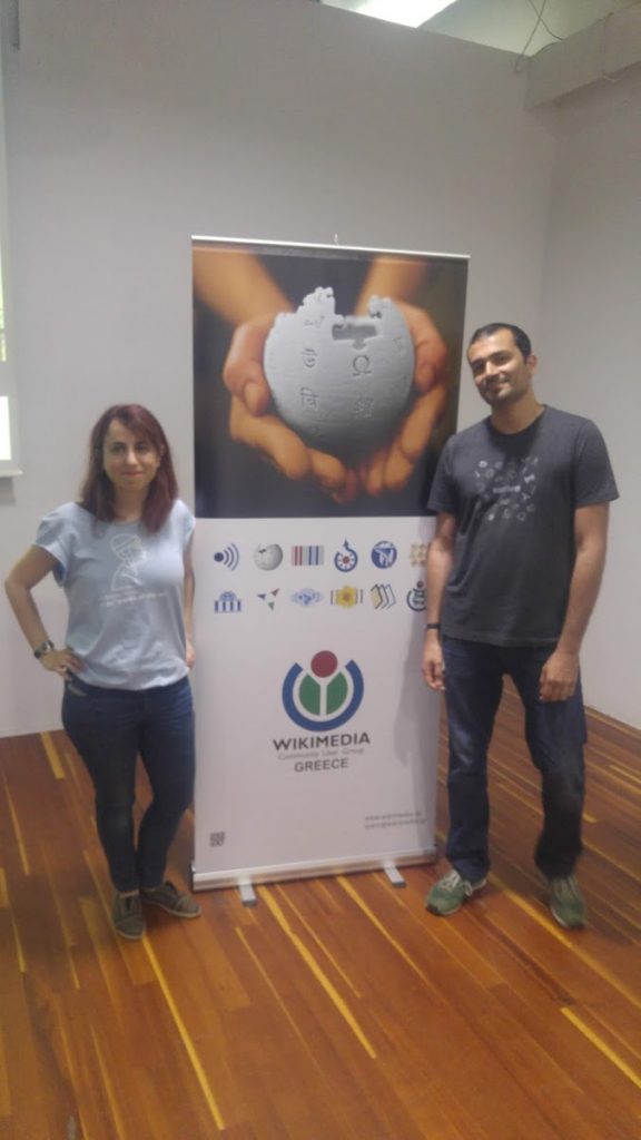 Οι Μάριος Μαγιολαδίτης και Θανάσης Καπελώνης βρέθηκαν στο χώρο για να μοιράσουν φυλλάδια και για να ενημερώσουν για τις δράσεις του Wikimedia Community User Group Greece τους εκπαιδευτικούς που συμμετείχαν στο συνέδριο.